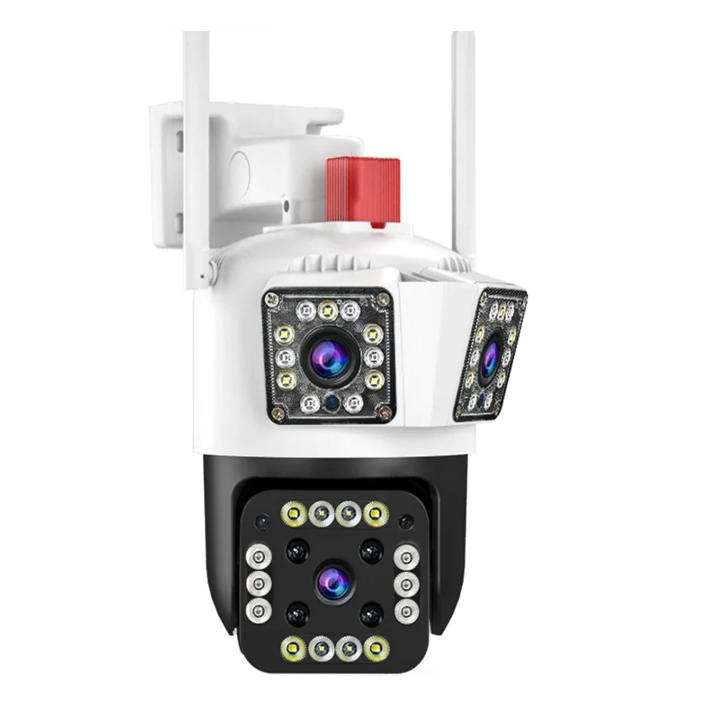 Ši išmani kupolinė lauko WiFi kamera su 12MP raiška ir 6K vaizdo įrašymo kokybe yra puikus sprendimas jūsų namams ar verslui. Su trijų objektyvų sistema gausite platesnį matymo lauką ir sumažinsite aklųjų taškų tikimybę. Patogiai stebėkite viską vienu metu naudojant trijų ekranų peržiūros funkciją.